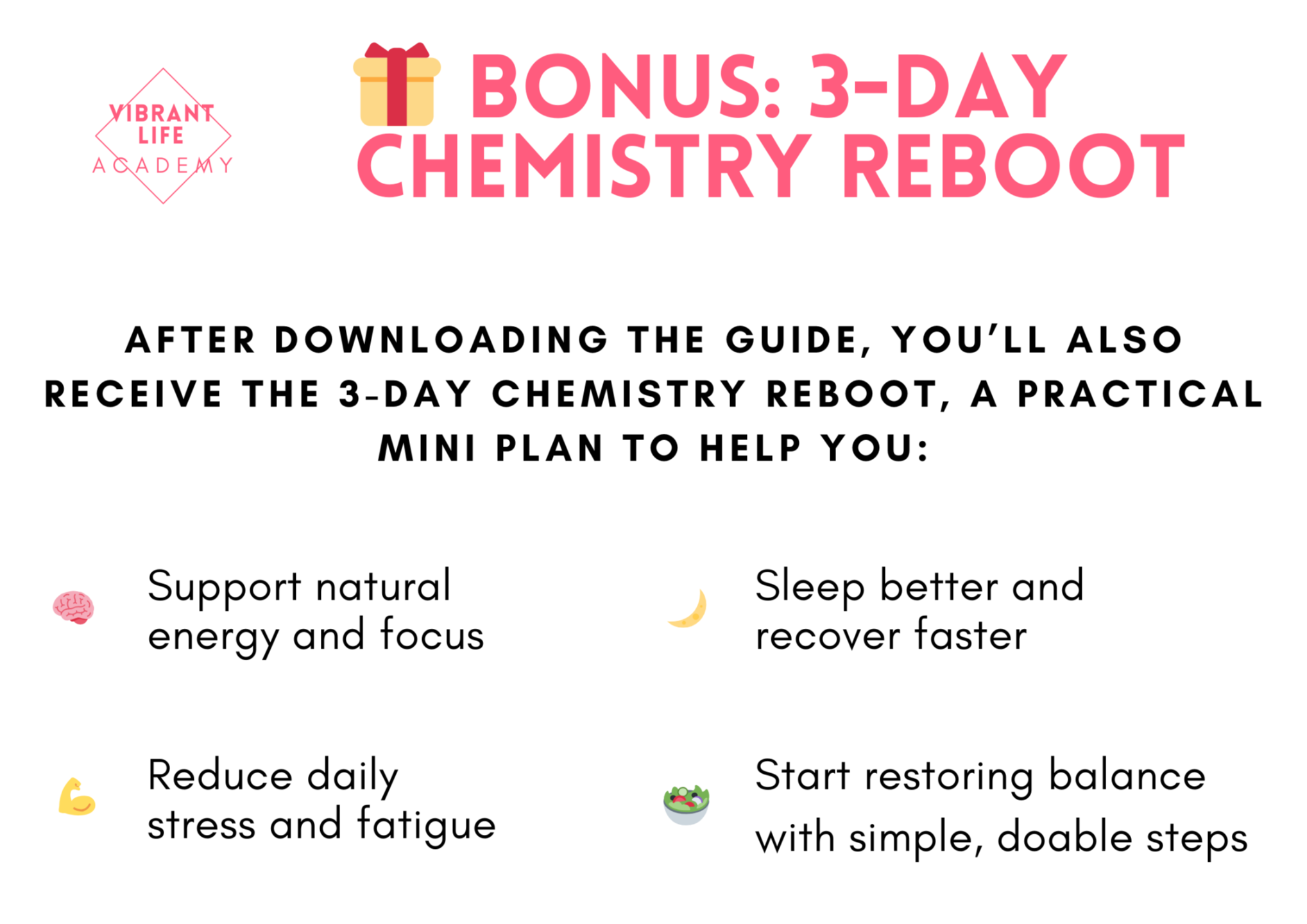 Check your email over the next 2 days for your free gift:Ā yourĀ 3-Day Chemistry Reboot plan.Ā